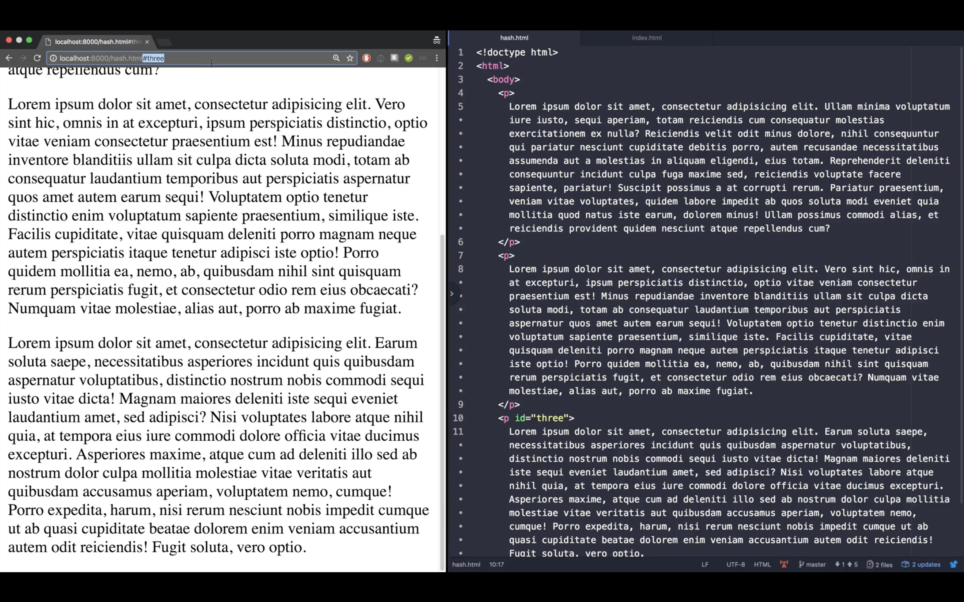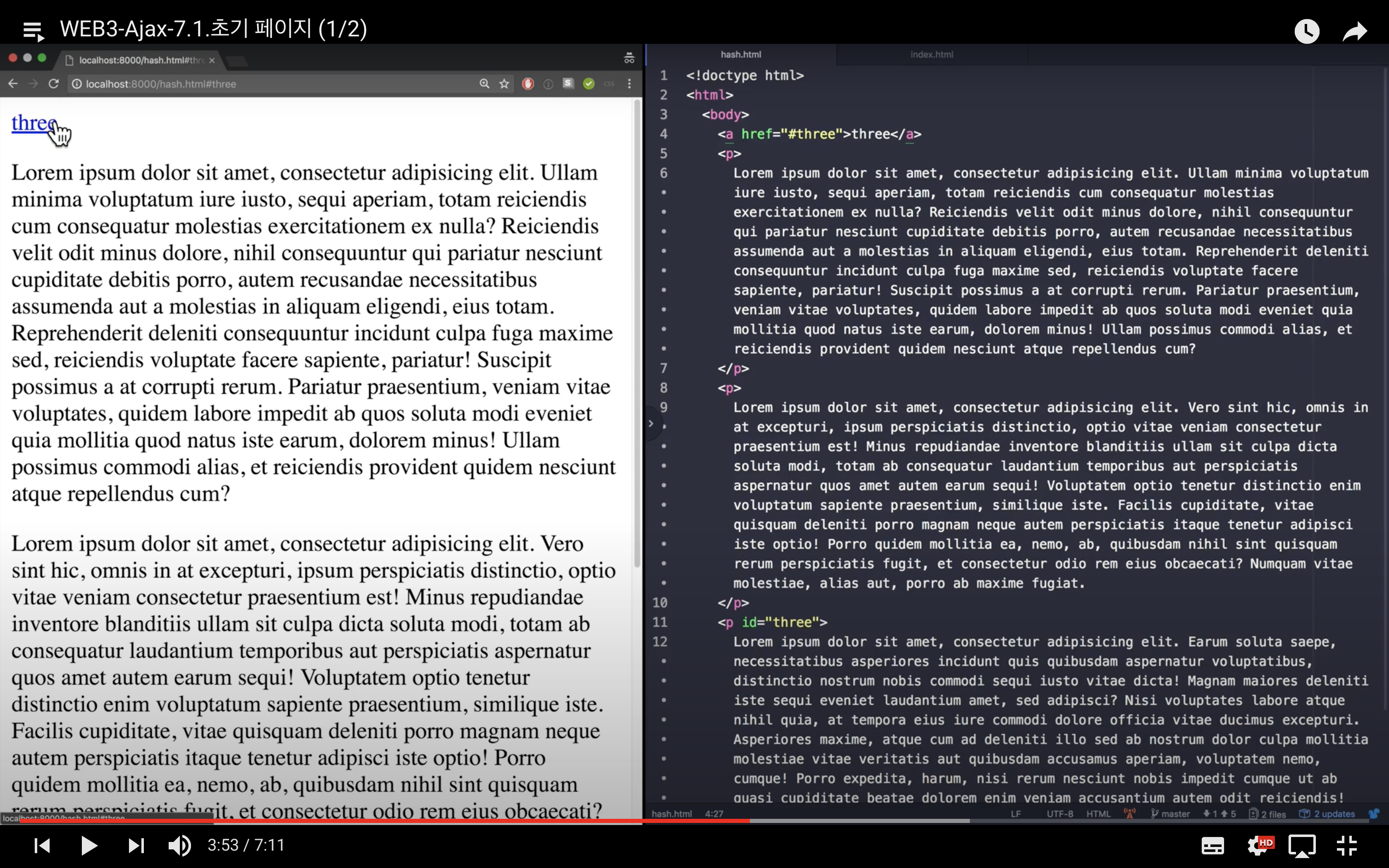 페이지 접근은 url로 가능하지만 페이지의 특정한 부분에 접근할 때는 # hash를 쓰면 된다.