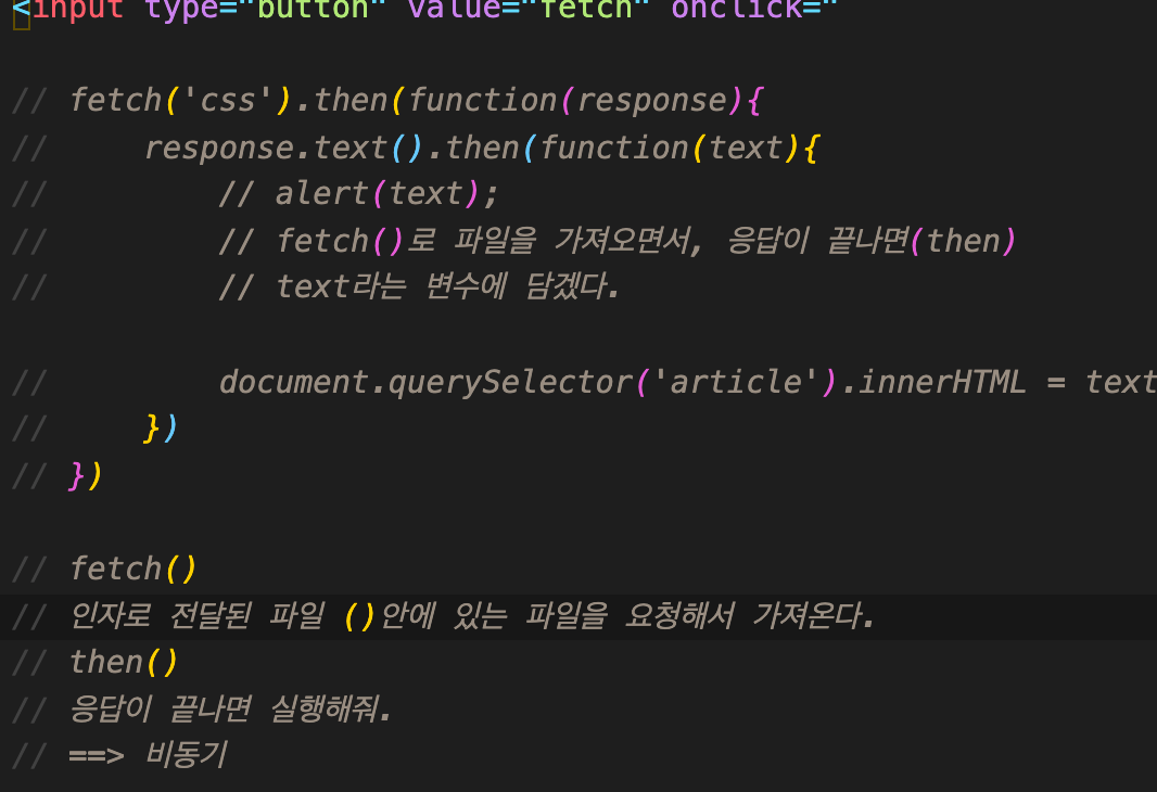 "fetch로 a라는 파일을 다운을 받고, 이 다운이 끝나면 b를 실행해 줘"